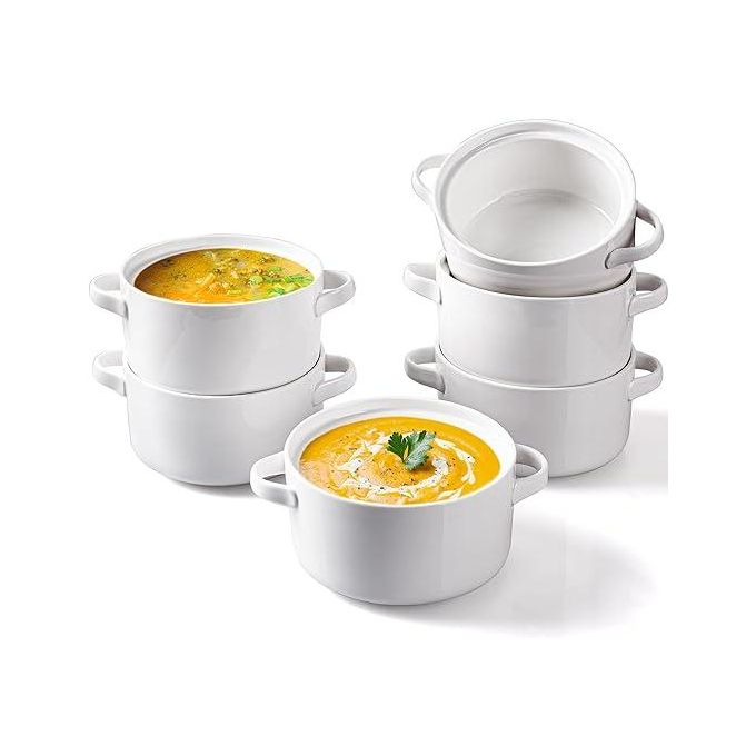 French onion soup crocks made from professional ceramics are odorless, durable, and safe to use in the refrigerator, oven, microwave, and dishwasher.