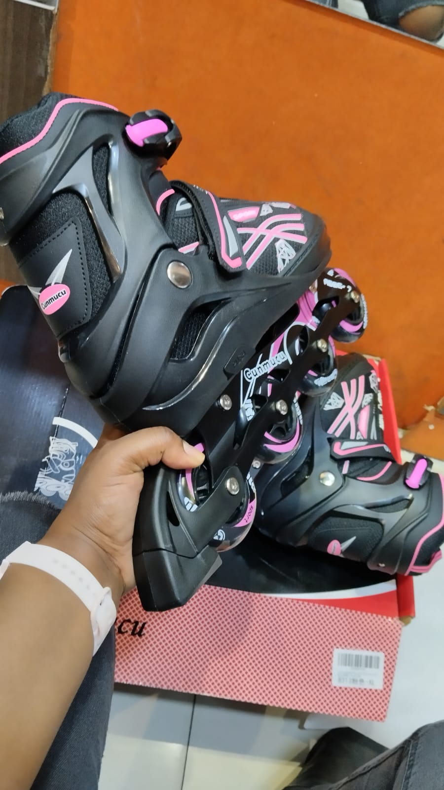 High quality rollerskating shoes. Excellent elasticity and abrasion resistance.Small, Medium,large size.The rollers are made high quality PU, resilient and skidproof.With some breathable design, comfortable to wear. Perfect color combination, elegant and good-looking. Suitable for all seasons: Spring, Summer, Autumn and Winter.