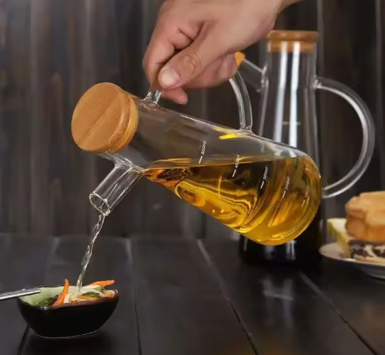 Marked measurements are displayed on the dispenser for Olive oil, You can control the amount of oil or vinegar poured into your dishes, eating healthier and preventing messes.