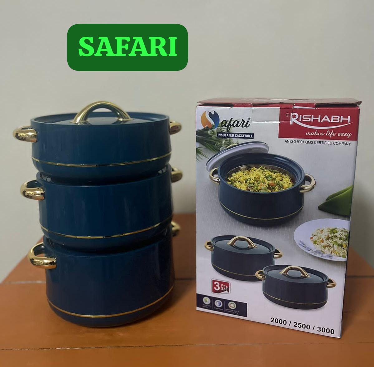 Keep your food hot and fresh for up to 6 Hours with this safari 3 Piece set Food Warmer Server/ Hot Pot. This double wall strong and sturdy Hot Pot is made of stainless steel and insulated with top quality material to keep your foods hot and cold for long. This set is ideal for luncheon, you can serve a whole party worth of food and snacks. The sets are all you need to create your own personal home buffet for your visitors. Easy to clean and use and does not rust.