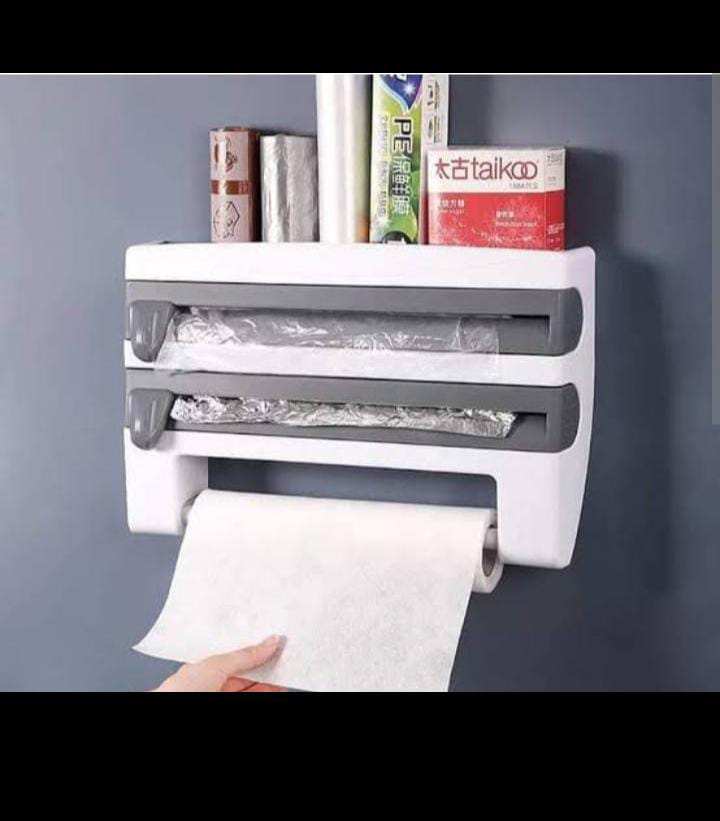 The Triple Tissue Paper Dispenser makes your kitchen more functional as it holds tissue paper, aluminium foil and other kitchen necessities with just one efficient tool. The kitchen towel holder is adjustable, to accommodate any size roll. The foil and cling film holders allow for easy and clean-edged cutting with two sliding blades. Leaves roll ends easy to grip every time. Wall mountable Easy and practical Front Loading with Mountable Paper Towel Rack The Rolls Manually great Idea to Store Aluminum Foil and Paper Towel. Easy to set up, consists of 2 compartments and an adjustable also detachable kitchen roll holder. Manufactured from high quality PS Plastic material.